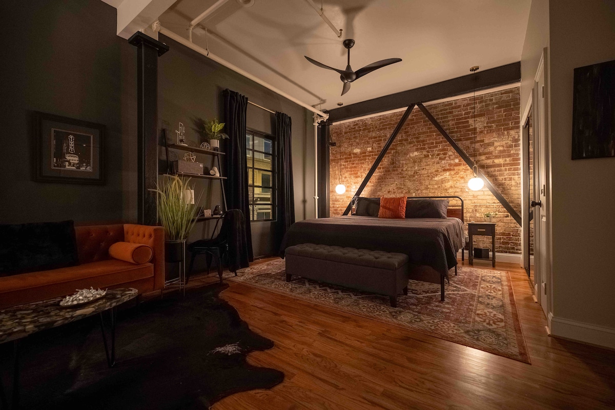 The Top Shelf is a space carefully crafted with amenities aplenty! Perched on top of the 90-year-old Pepper Bourbon Distillery, this condo is for the Lexington visitor who likes to be in the middle of the action. Soaring views, three balconies, and all the amenities to make your Bluegrass visit one of a kind. The Top Shelf is perfect for a discerning couple, an adventuring family, or for a group of fun-seekers. Large parties are not allowed. Maximum guests, per LFUCG code restrictions =10