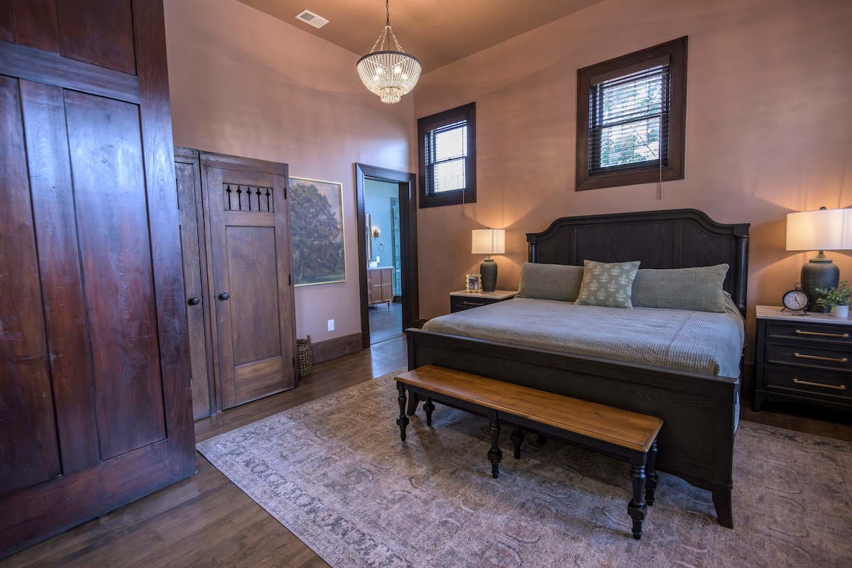 This unique church has a style all its own. Master bedroom has king bed and an ensuite with double vanities. Loft with a stunning view of the spectacular glass stained window which includes 2 queen beds. 2nd full size bathroom. The double sided fireplace in the living room will make you cozy up to the fire watching your 55” TV. The fully equipped huge and open concept kitchen is a dream come true. The original church pews will seat many around the hand made live edge table.
