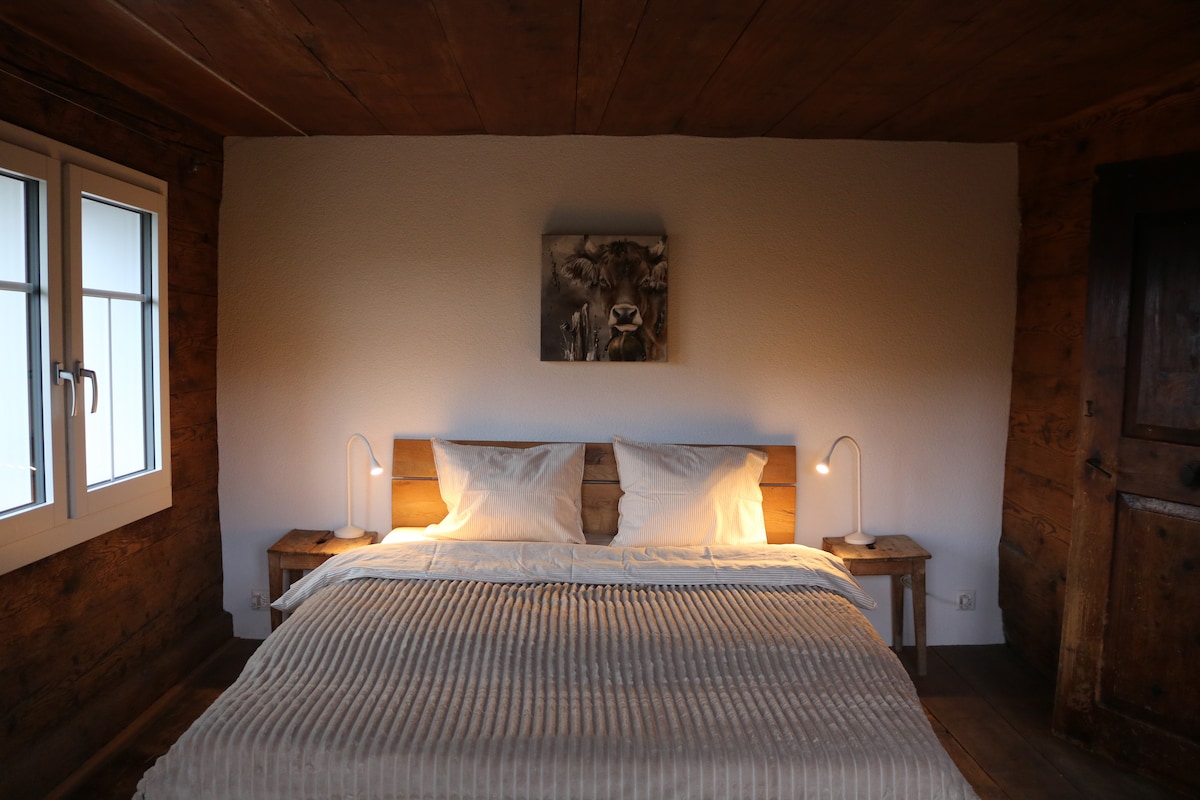 Das rund 400 Jahre alte Bauernhaus, das auf knapp 700 m.ü. Meer liegt, wurde 2019 Teilrenoviert. Dabei wurde gekonnt die rustikale Basis mit modernen Elementen kombiniert. Das Haus ist optimal für den Familienurlaub bis 6 Personen eingerichtet. Natürlich sind auch Gruppen, Paare und Einzelpersonen herzlich willkommen. Das Haus besticht mit einem grosszügigen Umschwung welcher sehr naturnah gehalten wird. Für Kinder sind im und ums Haus diverse Spielmöglichkeiten vorhanden.
