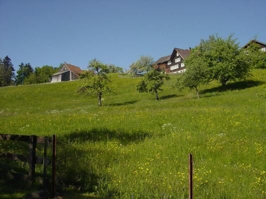Wollen auch Sie, Ihre Ferien im schönem Appenzellerland verbringen? Die Parterre Wohnung bietet Platz bis acht Personen. Haustiere sind bei uns herzlich willkommen. Dieses Bauernhaus mit Kinderspielplatz steht mitten in den Wiesen in schöner und sonniger Aussichtslage nähe Säntis und ist ein Geheimtip für Familien, Gruppen und Ruhesuchende, die gerne ihre Ferientage in der Natur verbringen möchten. Hier haben Sie eine frei Rundsicht über die Appenzellerhügellandschaft und auf den nahen Säntis.