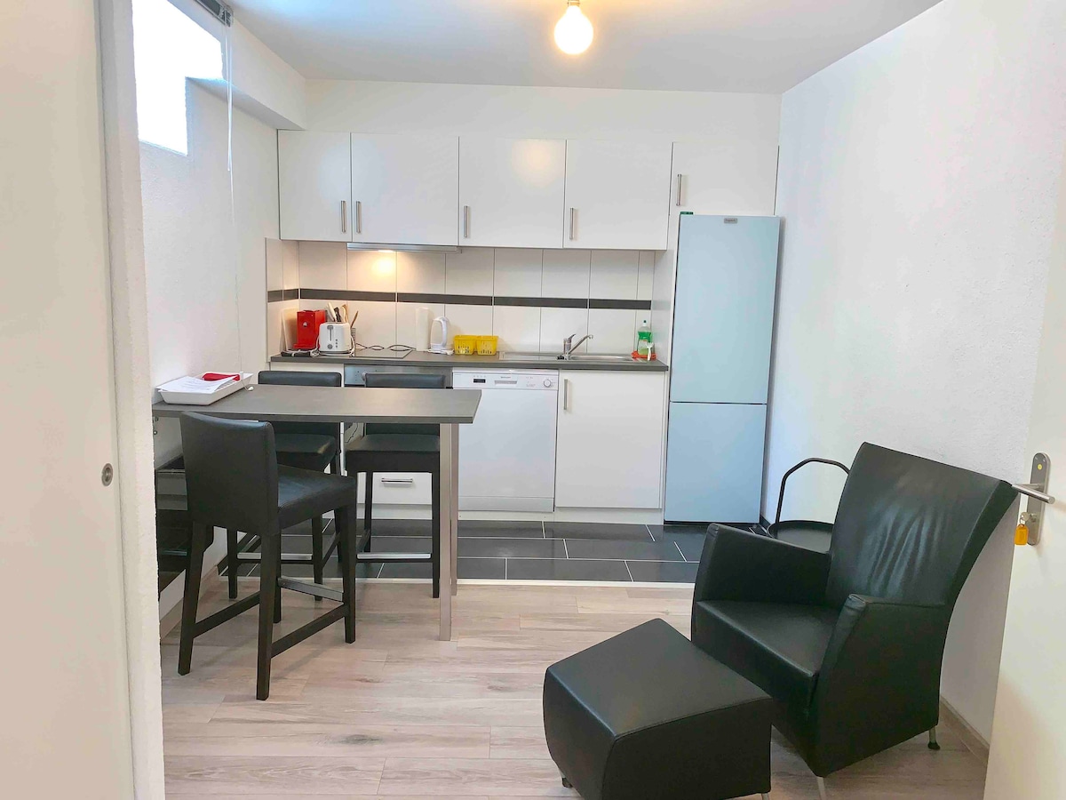 New small apartment in large villa at the foot of the Rosenberg - 3 minutes from St.Gallen main station for rent. Bedroom/study, with double bed (1.40), clothes rail, wardrobe/work desk, with own bathroom WC, washbasin and shower. Own small kitchen. The studio is located on the ground floor in a large art nouveau villa directly on the Rosenberg. Parking possible for a fee