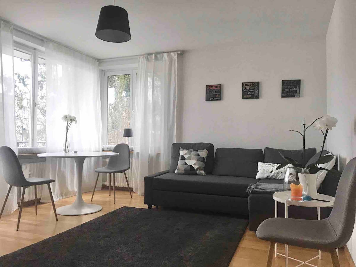 Diese hochwertige Wohnung in St. Gallen - St.Georgen besticht durch modernes Design und Liebe zum Detail. Ideal für Business- oder Feriengäste. 1 Schlafzimmer, 1 Badezimmer, einen offenen Ess-/ Wohnbereich mit Schlafsofa, sowie einen Balkon. Ein kostenloser Parkplatz direkt am Haus und High-Speed-WLAN machen das Apartment besonders attraktiv für Geschäftsreisende und Langzeitgäste. Ein See in der Nähe und die Bushaltestelle direkt vor der Wohnung sorgen für Komfort und ideale Anbindung.