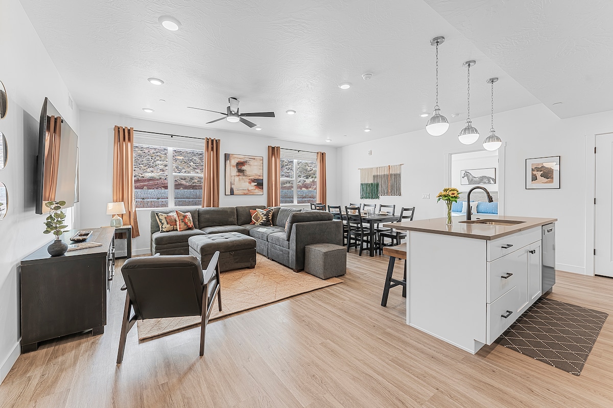 靠近锡安/泳池的全新度假村公寓,非常适合家庭入住