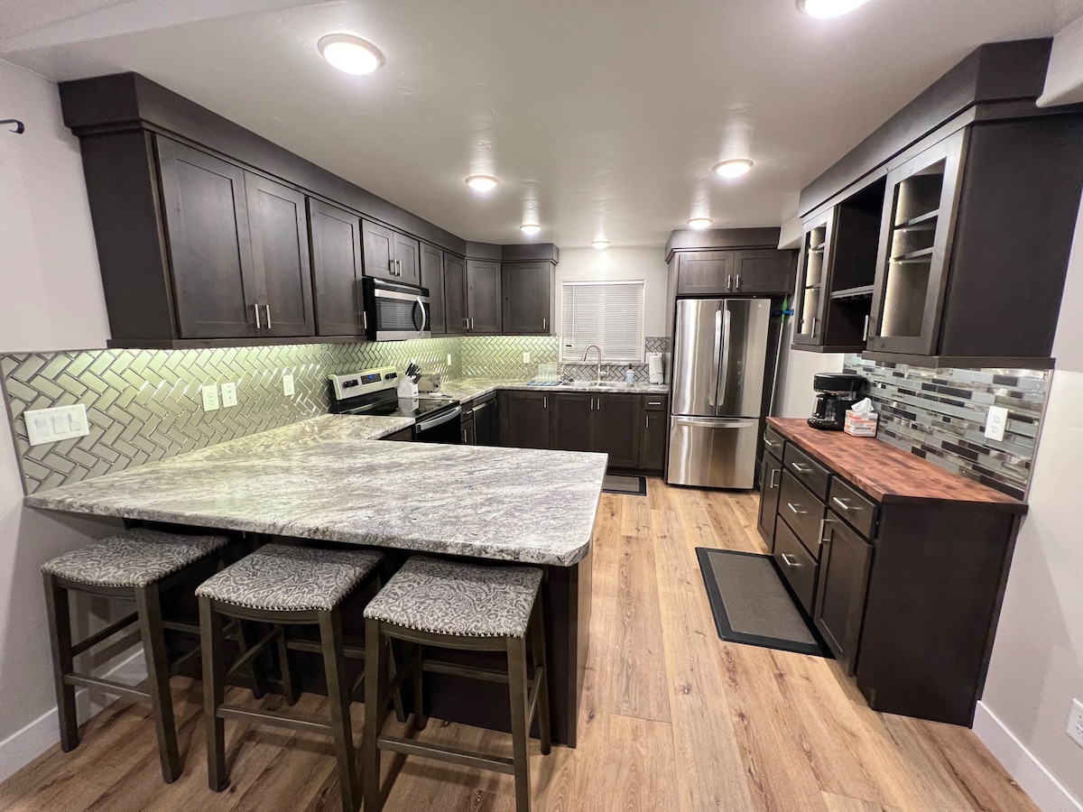 Our newly remodeled home offers a convenient location to many favorite trails and parks. Let our cozy retreat make your vacation in the deserts of Southern Utah complete. Set on a quiet hill with beautiful views of Zion National Park. We have all the comforts of home; including a fully functional kitchen, washer and dryer, plenty of beds, fiber internet, smart TVs with Disney+ and attached bike shop with workbench to store your bikes and room to repair them if needed.