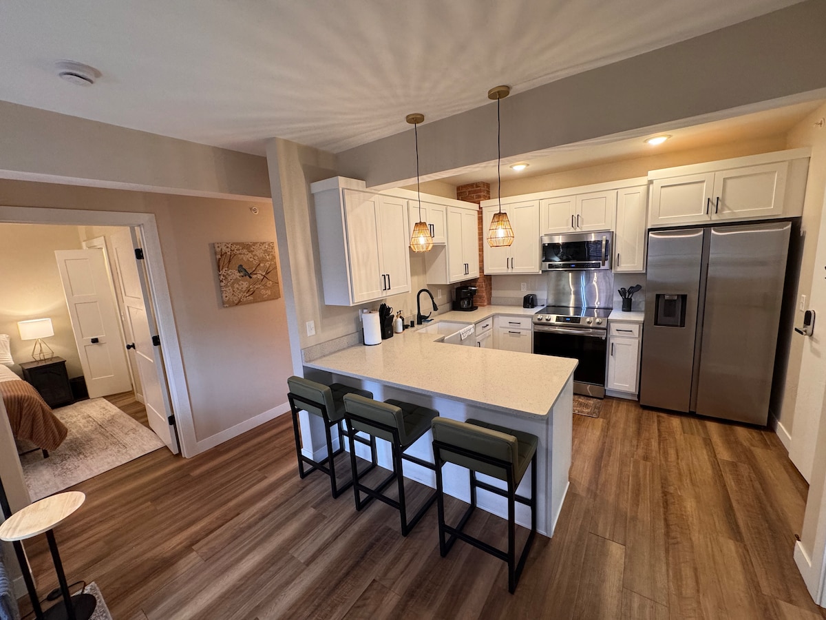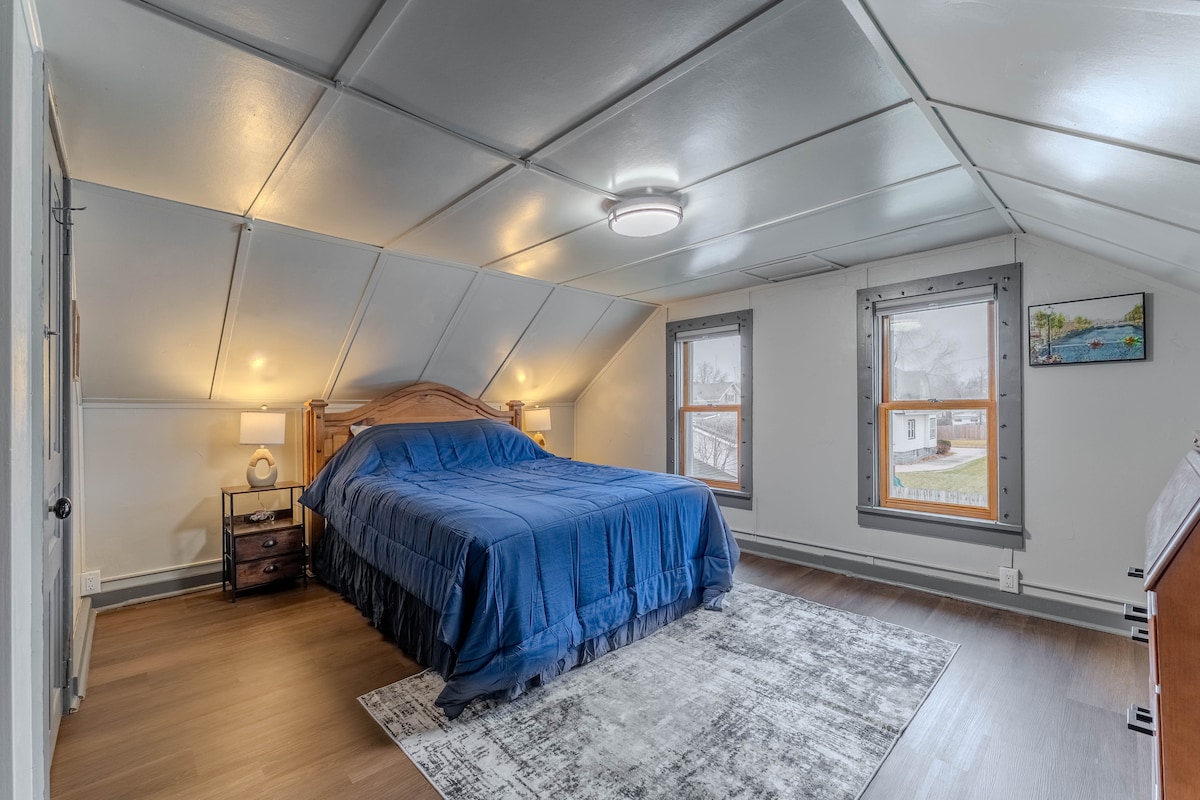Enjoy this great space in a quiet safe neighborhood. One car allowed at the property! The space has comfortable beds, provided hygiene products, a smart TV and snacks + beverages. Wake up and enjoy coffee provided by us. Shops and restaurants within walking distance! Visit The Plaza downtown with ice skating, fire pits, a coffee shop and more. Great for a couples getaway. Luxury for a great price! A portion of the proceeds from bookings go to housing evacuees, refugees and veterans.