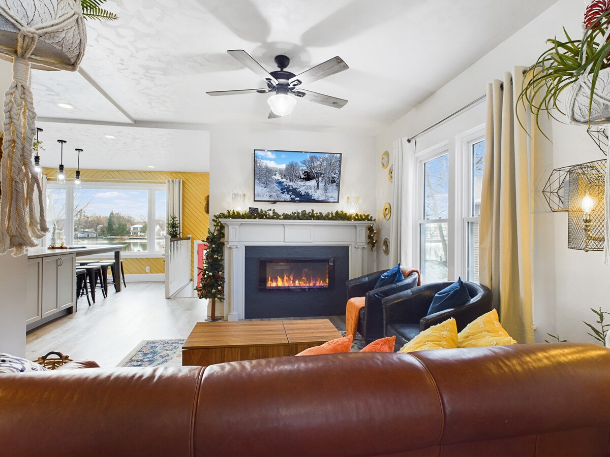 Relax at Sunset Oasis, where stunning lake views and sunsets set the tone for your stay. Sip coffee in the chef’s kitchen, paddle out in kayaks, grill lunch, and dine lakeside. In the evening, cozy up by the fireplace or gather around the firepit under the stars. Stream your favorite shows on the smart TV or explore nearby downtowns just minutes away. This stylish, updated luxury lake house is the perfect escape to unwind, reconnect, and create unforgettable memories.