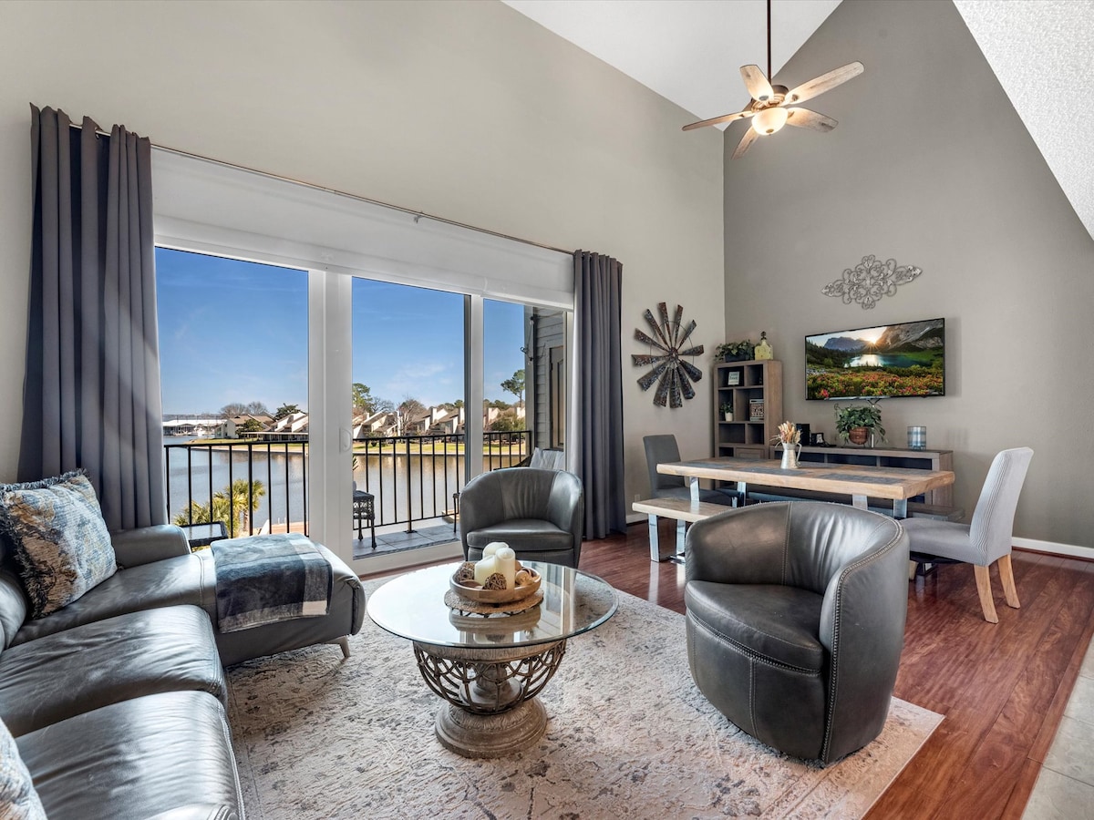 Forget your worries at The Carlton Family Lake House. It’s truly serenity on the lake…the calmness and peaceful you’ll feel here. This property on Lake Conroe in April Sound gated community is dedicated to ensuring a peaceful, comfortable & rejuvenating experience. The spacious 1,824 sq ft condo is perfect for a group of friends & family of 6 comfortably. Located conveniently near wedding venues, breweries, Margaritaville & many restaurants. Come & relax on your lake front property.