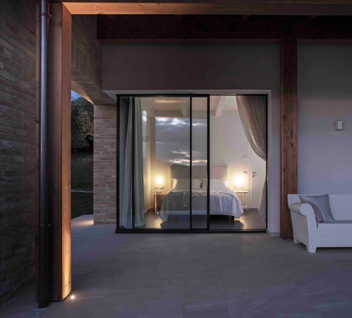 Chalet Sole Luna, fully renovated, is a chalet-style villa set in 2,500 sqm of private greenery, surrounded by fragrant olive trees and shaded by a pine grove, on a scenic hill where nature and silence reign supreme. Complete privacy, breathtaking sunsets, and starry skies frame a truly restorative stay. Ideal for families and groups of friends. Just a few kilometers from the Misano World Circuit, it’s an exclusive retreat where peace meets landscape. The Chalet is Pet Friendly!