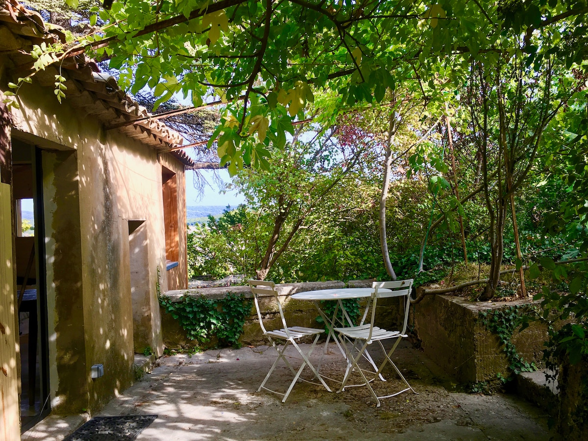 À 2 pas du centre ville d’Apt, dans le Luberon, un petit cabanon de pierre et son extension en bois. Dans un écrin de verdure, le cabanon, façon "tiny house", vous accueille confortablement. Une charmante terrasse ombragée grâce à l’exubérante bignone et des figuiers odorants le prolonge. Au delà de la vue dominante sur la ville, les monts de Vaucluse et les villages perchés complètent le panorama.