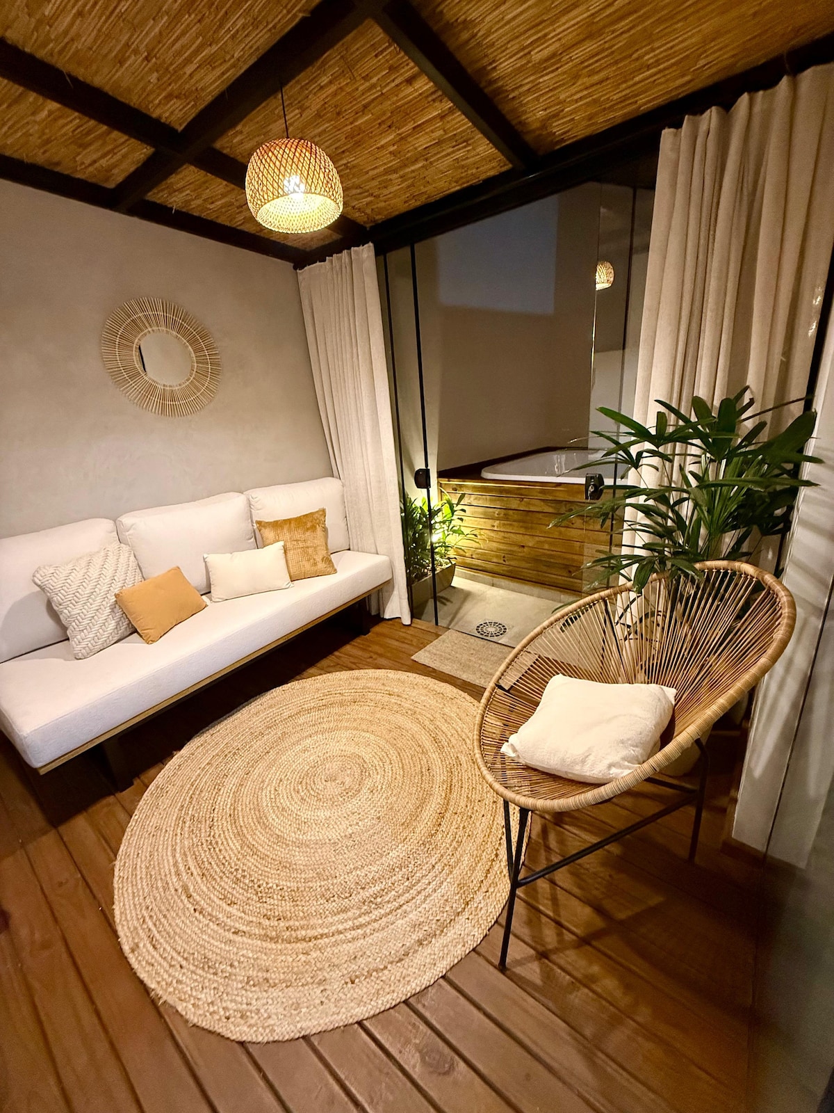 Relaxe em uma cabana exclusiva em Florianópolis com hidro privativa, jardim aconchegante e todo o clima romântico que você procura. Estamos em Vargem Pequena, no norte da ilha, perto de praias, restaurantes e pontos turísticos, mas em um cantinho reservado para garantir tranquilidade. O refúgio ideal para casais! Com a hospedagem inteira só para vocês, um ambiente privativo, silencioso e acolhedor e com a possibilidade de adicionar pacotes românticos (cobrados a parte).