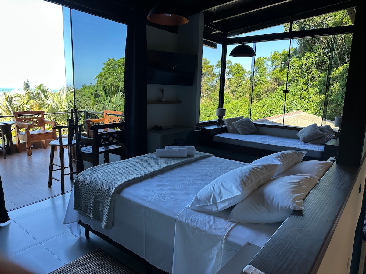 Relaxe e aproveite dias leves neste loft aconchegante e contemporâneo, localizado em uma região tranquila de Canasvieiras, perfeito para quem busca descanso, conforto e praticidade perto do mar, recém-construído, com jacuzzi climatizada, iluminação cênica, sacada com churrasqueira e vista panorâmica. 🌿 Natureza e tranquilidade Pela manhã, o ambiente é agradável, com a presença de pássaros que podem ser vistos e ouvidos, criando uma atmosfera de refúgio e bem-estar mesmo na alta temporada.