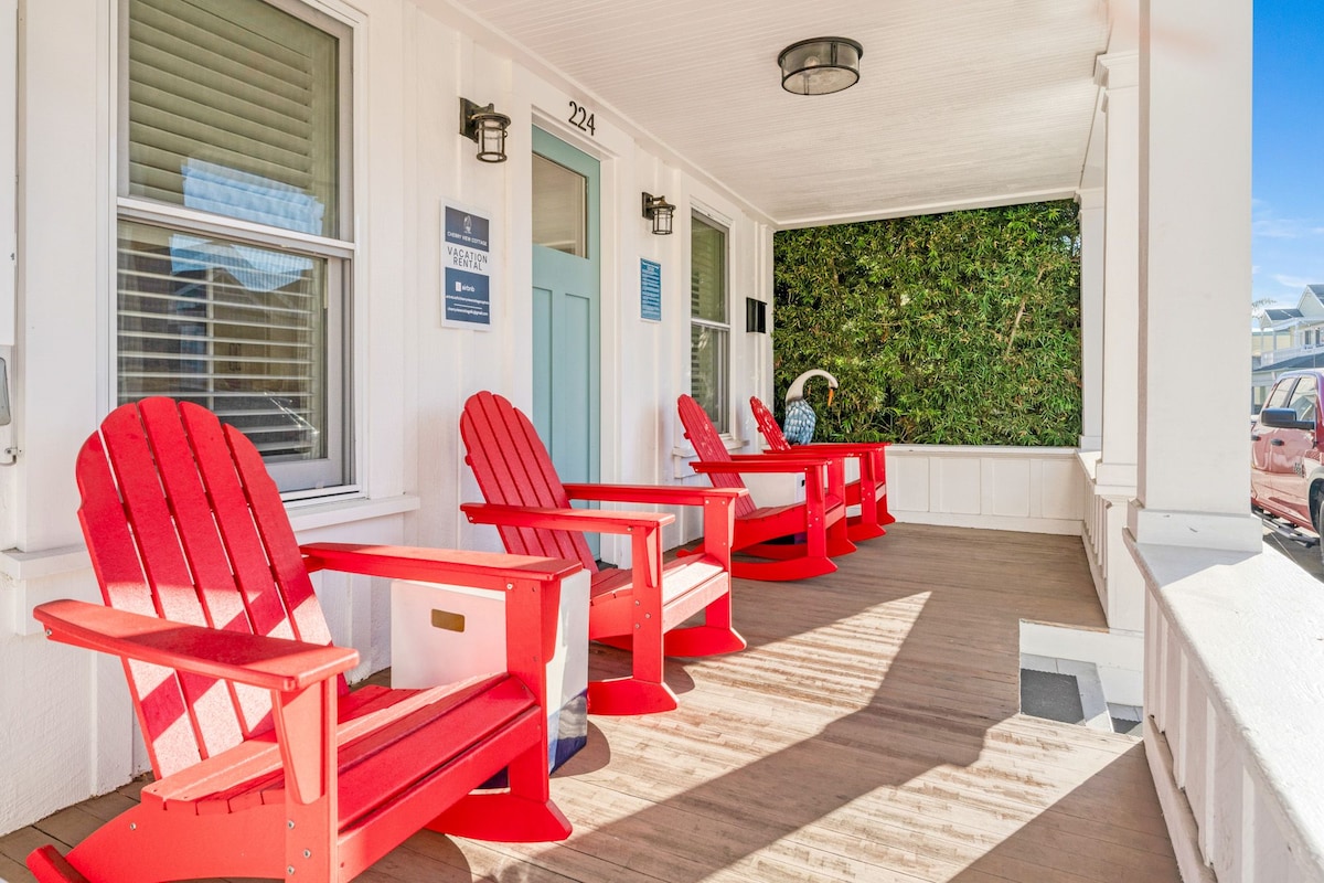 Sea breezes and unobstructed 180-degree ocean views greet you from the private deck of RdM Lookout, a brand-new beach property with a bright open, mid-century modern beach design complete with a cozy fireplace hardwood floors, and quartz counters. A comfortable, chic space, guests tell us they love the amazing beds, soft linens, fluffy towels, and our gourmet kitchen with a stocked coffee bar with to-go cups for long beach walks. Come home to a relaxing, beach vacation in a charming beach town.