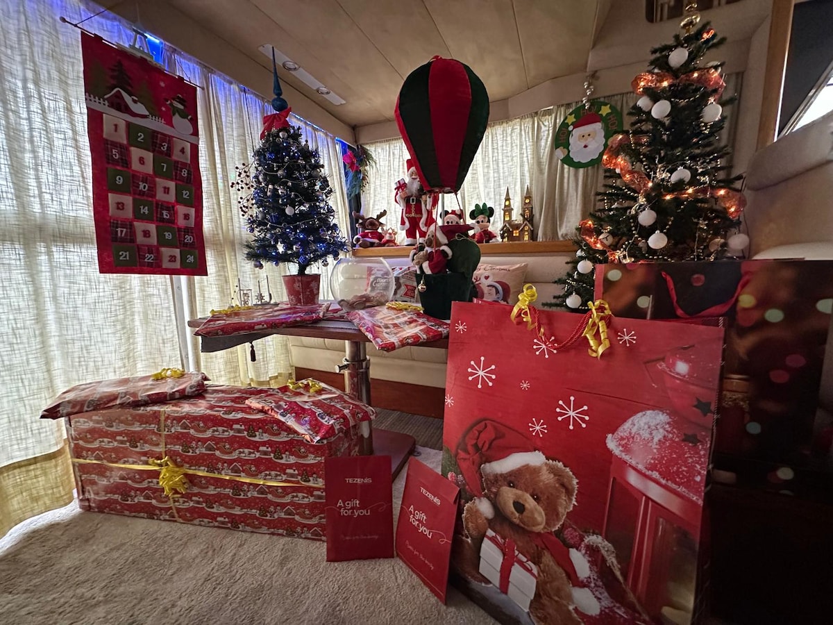 L'intera imbarcazione è riservata all'ospite. L'interno della barca dispone di due ambienti principali (zona letto e dinette) ed il bagno. Entrambi i vani sono comunicanti con il bagnetto privato, il bagno è servito da un piccolo lavabo e dal wc. Un doccino consente di fare la doccia utilizzando acqua a temperatura ambiente. La colazione ordinaria, compresa nel prezzo, prevede caffè, tè, tisane e cornetti imbustati singolarmente, la preparazione della colazione è a cura dell'ospite.