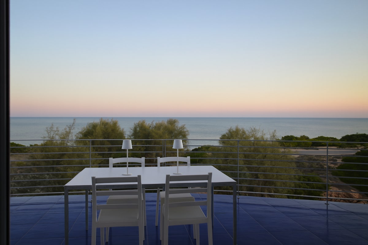 A unique experience of relax in a Sea View finely furnished apartment. The building is located directly in Torre Ovo’s bay, in the province of Taranto. The apartment has: custom designed furniture; one bedroom with queen size bed and a very comfortable sofa bed in the living room; direct access to the private beach with 2 sunbeds and one beach umbrella included in the price of the apartment; private garden; and offers various extra services as: private chef; boat excursions, Beauty Treatments.
