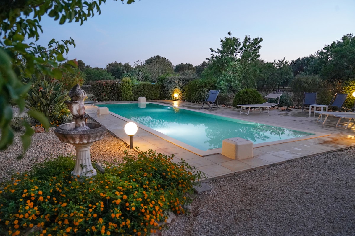 Il trullo è immerso in più di ottomila metri di terreno delimitato dai classici muretti a secco. Ulivi, querce e macchia mediterranea riempiono la vista anche dall’interno della piscina. È il luogo ideale dove rigenerarsi, riposarsi e guardare le stelle . È la nostra casa estiva, ma ogni tanto la affittiamo. Si trova nella magica Valle d’Itria: Locorotondo, Cisternino e Martinafranca sono a dieci minuti. Con qualcuno in più si raggiungere il mare di Savelletri, Capitolo e Torre Guaceto.
