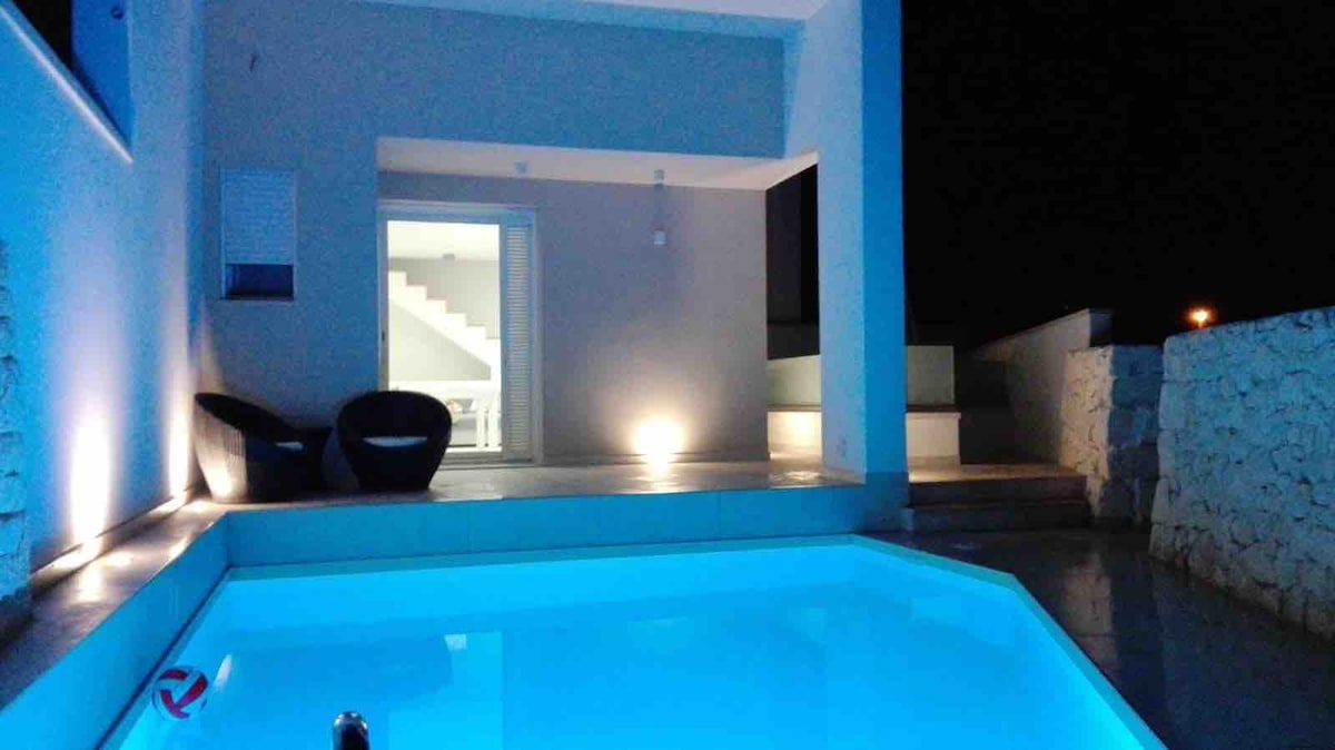 casa vacanza ubicata tra Crispiano e il borgo S.Simone; a 18 km da Martina Franca e 20 km da Taranto. Villa con ampio spazio esterno e piscina circondata dal verde della campagna. La casa dispone di 3 camere da letto, bagno e cucina pienamente arredata del necessario. Vi è all’esterno un’altra piccola struttura del 1800 attrezzata di una seconda cucina e di lavanderia. Nell'ampia zona esterna della villa vi è un barbecue, giardino con prato inglese, sedute, sdraio e una doccia esterna