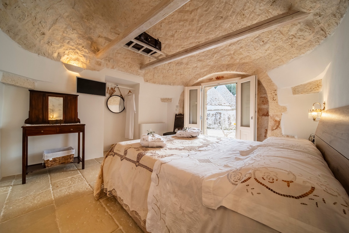 Our b&b was built inside a trullo formed by 3 cones and located in the historic and tourist center of Alberobello, a UNESCO heritage site. The trullo has been recently renovated respecting all the historical and architectural features of the structure without renouncing modern comforts. In addition, it has a large garden at the complete disposal of customers only with hot tube. Every morning, a full breakfast will be served inside your room kindly prepared by Mamma Nunzia.