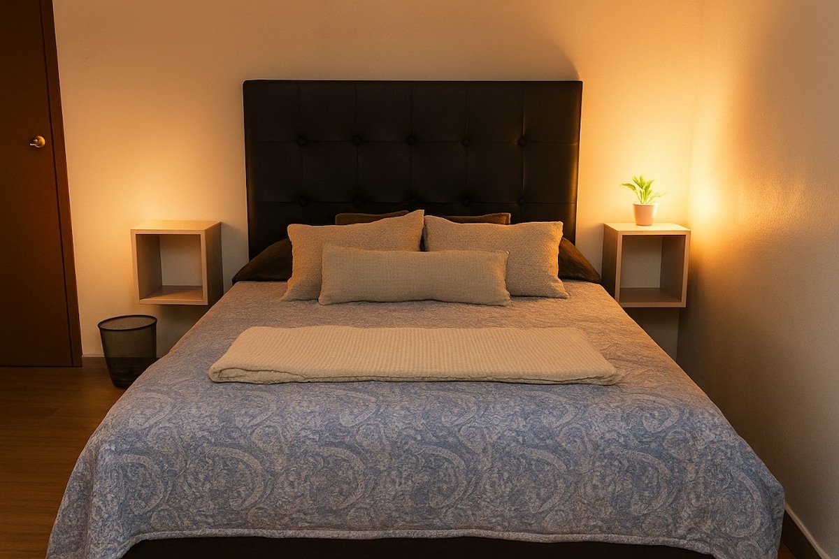 Contamos con 6 habitaciones simples de temática minimalista , cama de dos plazas, baño privado, agua caliente, Smart TV de 45", el garage está dentro de nuestras instalaciones y es gratuito para los huéspedes.