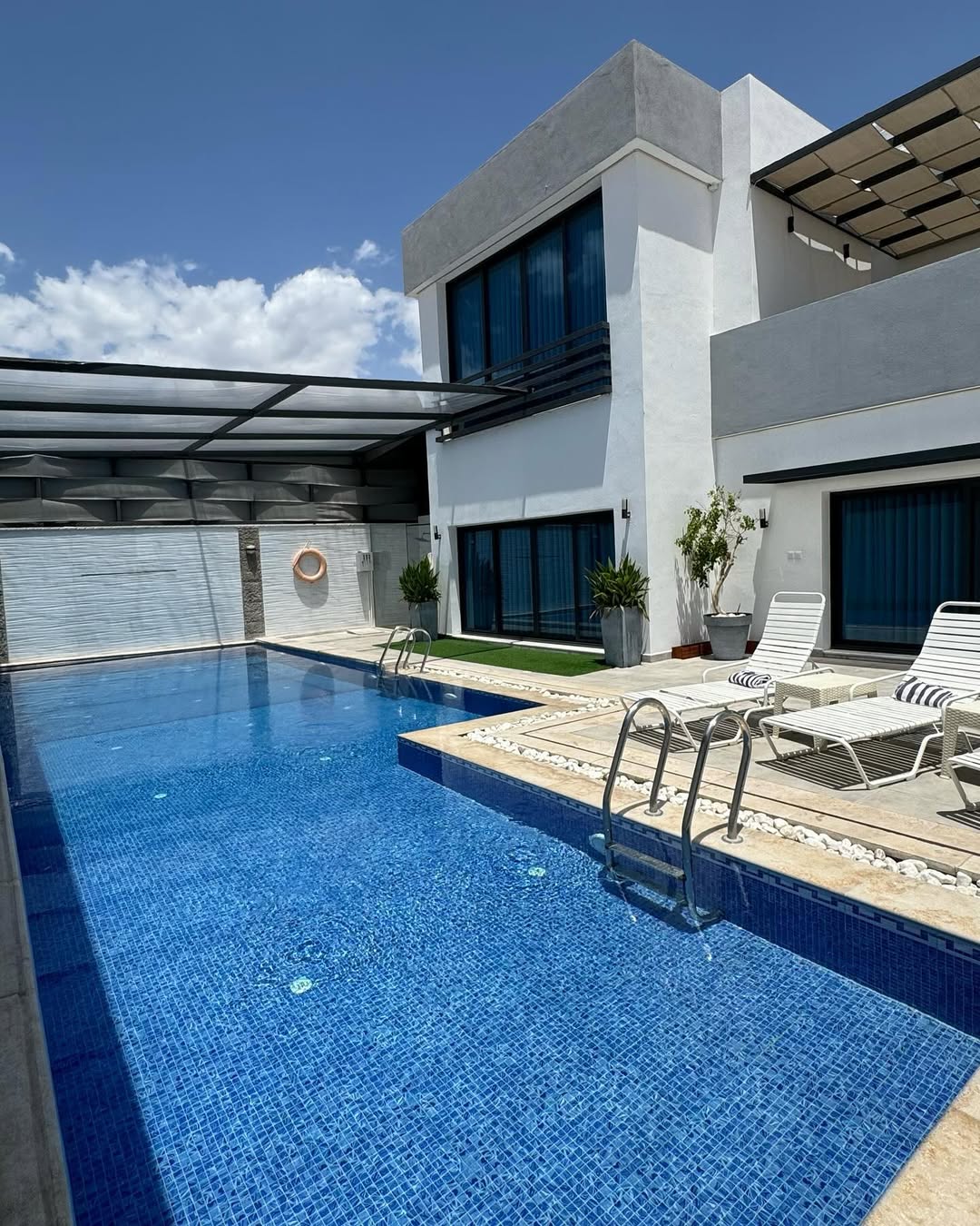 Discover Aqaba’s first private seafront chalet with a heated pool day and night. This spacious, peaceful, and unique retreat offers comfortable, clean, and luxurious accommodation with hotel-style bedroom setups and a stylish living area. Ideal for families, groups, and couples. Enjoy a safe, family-friendly setting with sun loungers, a BBQ grill counter, playground, outdoor dining and seating, sea views, 24-hour security and housekeeping support, plus free shaded and street parking.