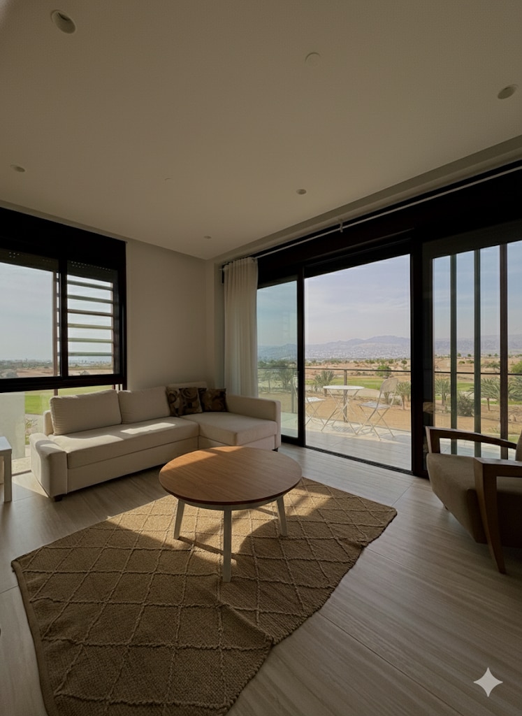 Ayla Golf Chalet for daily rent, second floor, with a large terrace and a wonderful view of the private pools, in addition to the luxury and cleanliness of the chalet. The chalet accommodates 5-6 people. There is access to the beach at B12 (Extra) There is a private barbecue area. There is a private Pools A free charging station is available for electric cars.