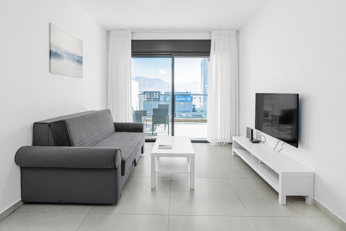 A fully renovated, spacious, beautiful apartment. located in a quiet and safe complex, just a few minutes' walk from the beach, restaurants and bars and few steps from a large supermarket. The apartment has bedroom, a living room, a dining area, fully equipped kitchen, The apartment has a balcony with stuning panoramic sea view which you can sit and enjoy eilat bay and the red mountains.