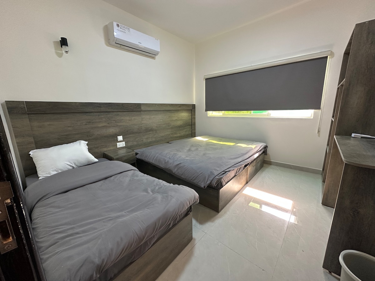 Economical room with a nice Mountain view, perfectly clean, comfortable beds, and a tidy bathroom. equipped with AC, fridge, TV, Microwave, hairdryer, and kettle. centrally located in Aqaba, everything is within a short walking distance. From the Beach, which is steps away from your room to the many shops, fruit and vegetable markets, bakeries, a variety of restaurants, cafes, the local fish market, parks, a bank, a free parking lot, and historical places around the city, easy to find.
