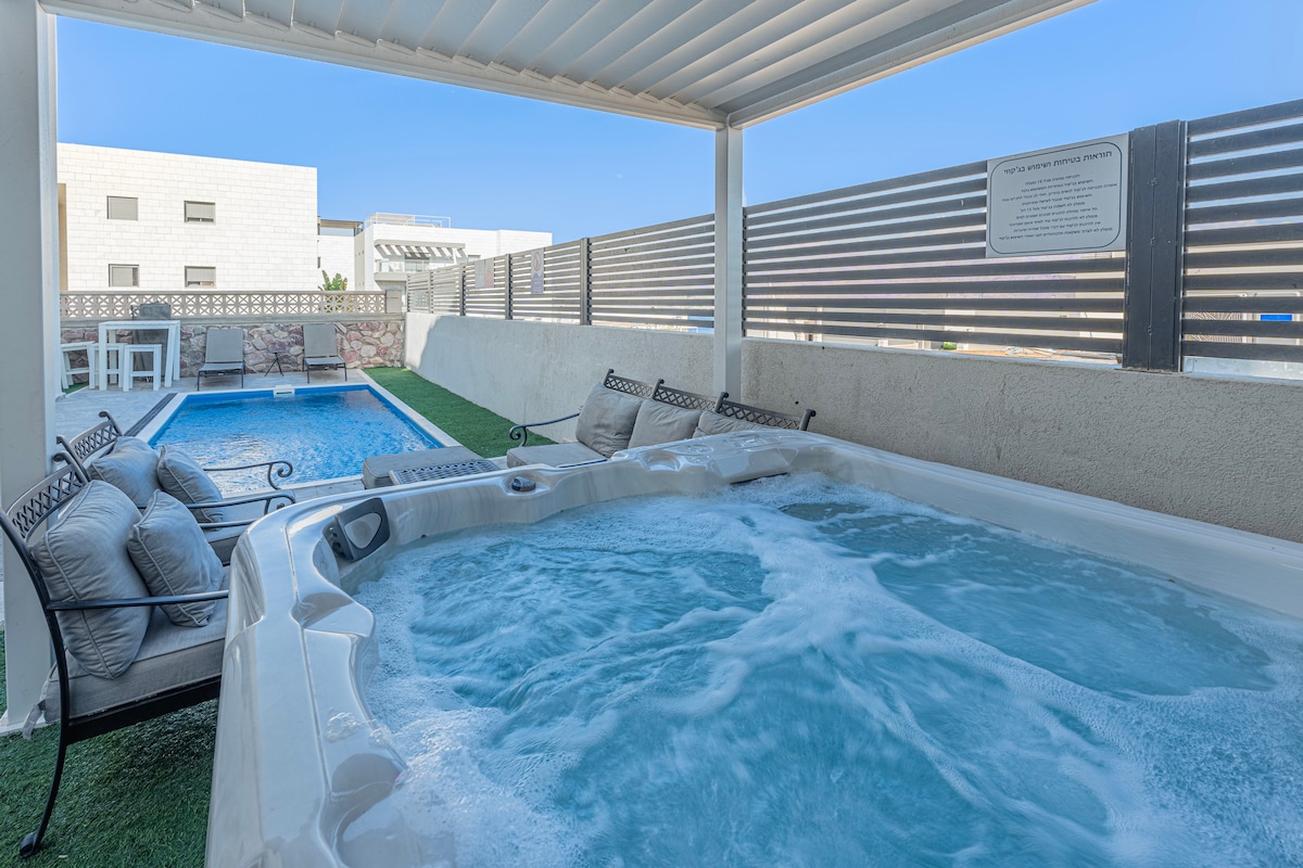 דירת גן פרטית ומעוצבת עם 3 חדרי שינה, 2 מקלחות (אחד מהם מאסטר בחדר שינה) , סלון חמים עם יציאה לגינה שקטה, מטבח מאובזר כולל מכונת אספרסו, ושתי חצרות עם ג'קוזי, פינות ישיבה, שולחן אוכל, מנגל גחלים ומקלחת חוץ. עיצוב טבעי עם עץ וסנאדות, אווירה רגועה וניחוח מדברי יוקרתי. חוויית אירוח אינטימית, שלווה ומפנקת, מושלמת למי שמחפש רגע של ניתוק אמיתי. Wi-Fi, מיזוג, חניה ושירות אישי 24/7. מיועד למשפחות. זוגות או קבוצות באישור מראש בלבד. אין לקיים מסיבות או להשמיע מוזיקה רועשת.