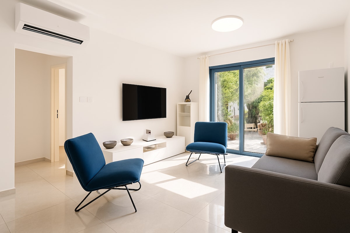 דירת נופש חדשה ומעוצבת הנמצאת במרכז העיר כ-8 דקות הליכה לים ולטיילת. מקום שקט ונעים עם חניה פרטית. מסעדות ובתי קפה בקרבת מקום, מיני מרקט פתוח 24/7 דירת חדר שינה וסלון + גינה חמודה, הכוללת מטבח מאובזר קומפלט, טלוויזיה שטוחה עם כבלים, אינטרנט אלחוטי מהיר, מקלחת שירותים מעוצבים.