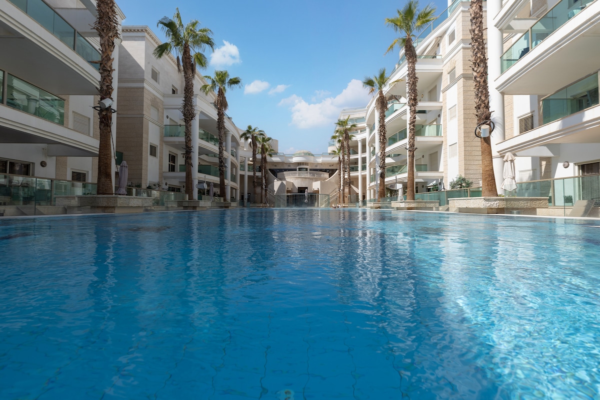 שתי דקות הליכה מחוף הים והקניון. דירת נופש חדשה מרווחת עם מרפסת לכיוון הים ונוף לבריכה, בריכה, בריכת פעוטות, ריהוט מלא ומטבח מאובזר. רק להביא מזוודה שימו לב ❣️הכניסה למתחם היא בליווי מבוגר מעל גיל 24. The whole group will enjoy easy access to everything from this centrally located place