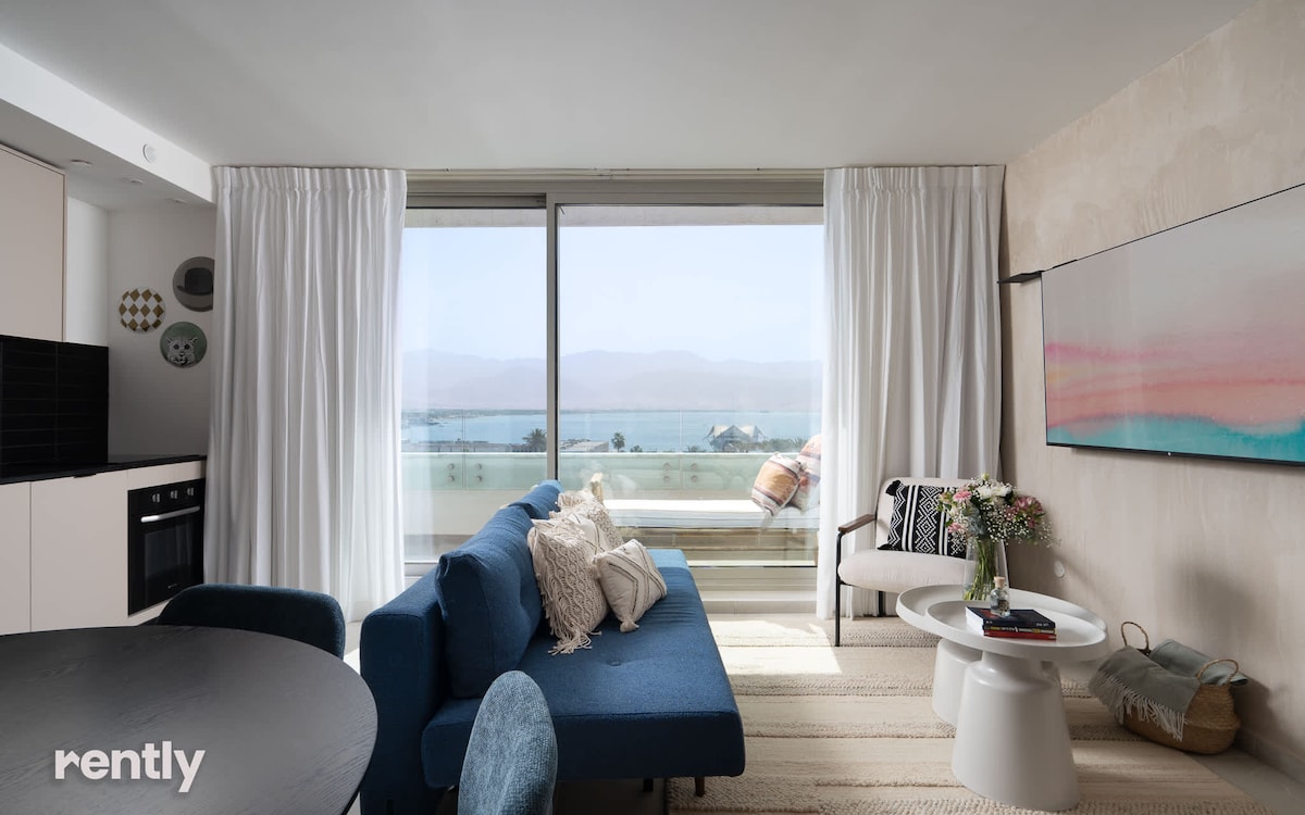 דירה מדהימה בגודל 2.5 חדרים (חדר שינה עם נישה מחוץ לחדר שינה וסלון. יש 2 מרפסות לדירה מהסלון והחדר שינה. גולת הכותרת של דירה זו היא הנוף המהפנט של מפרץ אילת, תוכלו ליהנות מנופים פנורמיים שישאירו אתכם פעורי פה. הדירה ממוקמת במתחם חדש בשם סי סייד הממוקם רק 100 מטרים מהחוף, מהקניון ומהטיילת. מציע גישה נוחה לים היפה. זו היא בחירה מושלמת לחופשת חוף מרגיעה ומהנה כמשפחה.