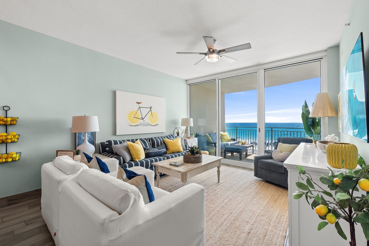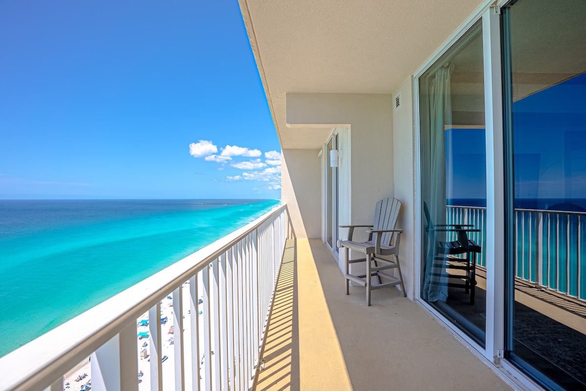 This 270-degree Observatory corner condo on the 25th floor offers breathtaking coastal beache views for miles. Located in the tallest building in PCB, Tidewater Beach Resort, this unique unit allows you to enjoy beautiful sunsets from right from the living room sofa or dinner table. At night, you'll be treated to the dazzling city lights on one side and the enchanting starlight and moonlight over the ocean on the other. The resort boasts several pools, a free spa, a gym, and private beach access