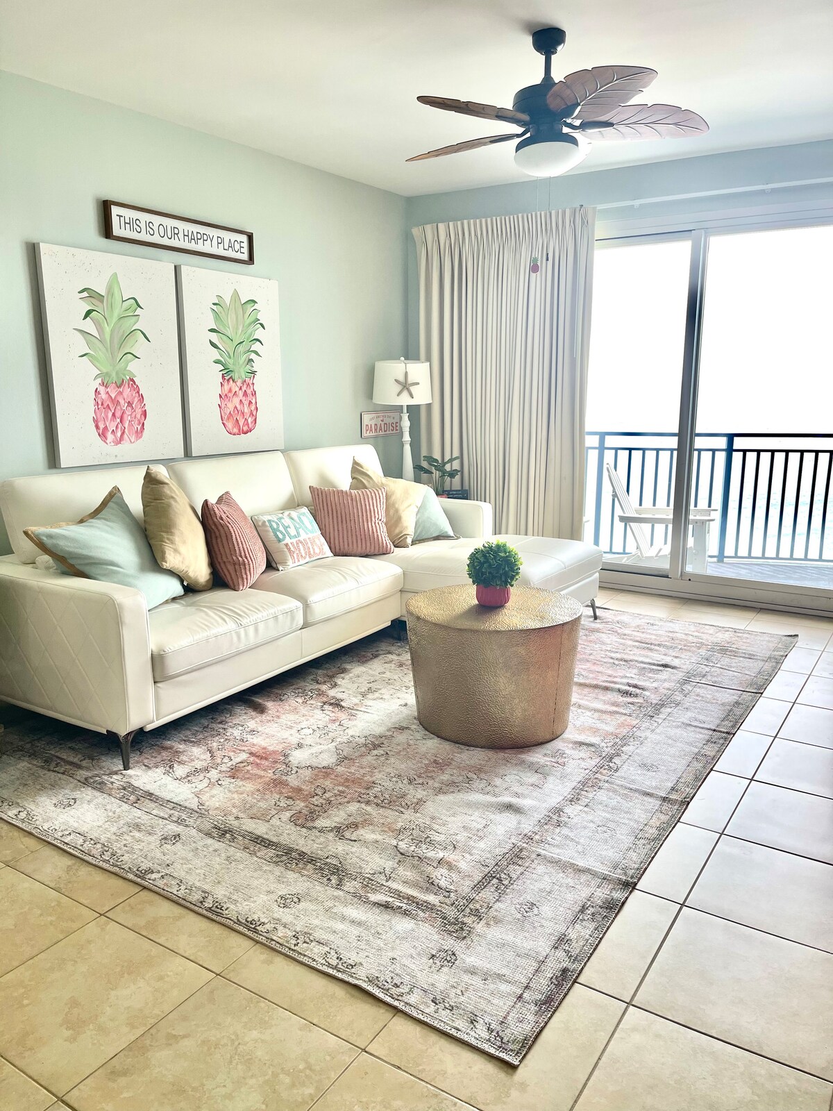 My Happy Place | 2BR+bunkroom/2BA 15th floor condo w/ epic Gulf views! FREE beach setup (2 chairs+1 umbrella, Mar–Oct 2026), plus access to 8+ extra chairs, 3+ umbrellas, toys, books & games. Picture yourself lounging on the balcony, splashing in the pool, or grilling dinner after sunset! Super-fast WiFi, 4 TVs, washer/dryer, well-equipped kitchen, & balcony grill. Resort hot tub, fire pit & good vibes included. $50 Resort Pass (0–1 car/stay), $100 for 2. Weekends book fast—weekday rates shine!
