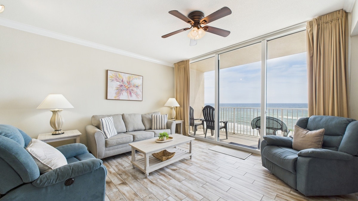 Aqua Paradise 🌊 Your Beachfront Home away from home! Wake up to stunning beach views in this newly updated 2BR/2BA condo! Relax on a private balcony, dip in the pool, or stroll just steps to the sand. With room for 8, it’s perfect for families or friends! Topgolf is right behind us, and Dolly Parton’s “Pirates” Show is coming soon. Pier Park is just minutes away! Book your perfect getaway now!