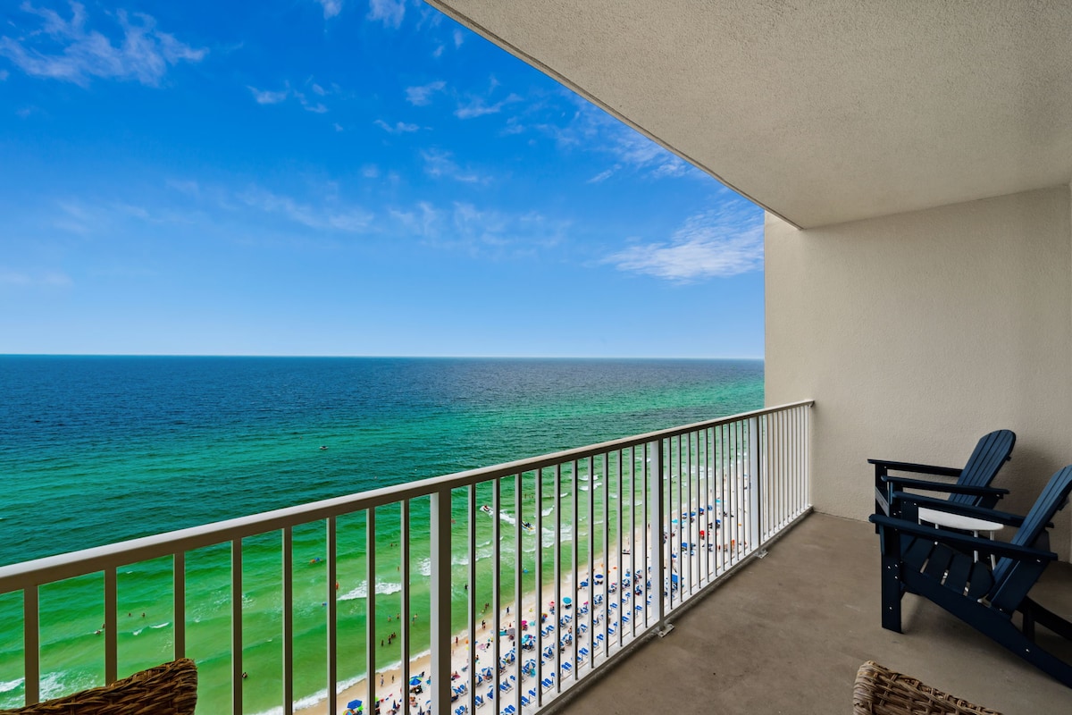Beachfront near Pier Park! Spacious 1,593 square feet condo, open floor plan, 2 bedrooms, 2 baths, right on the beach, with unobstructed view of the emerald sea - from the 20th floor. Wake up to endless ocean view from the king bed. * FREE * beach chair & umbrella service, March 1 - October 20 * Includes a set of 2 lounge chairs with beach umbrella 10% discount on nightly rates for 7 nights or more *** Must be at least 25 years old to book. Reservation holders' IDs are checked. ***
