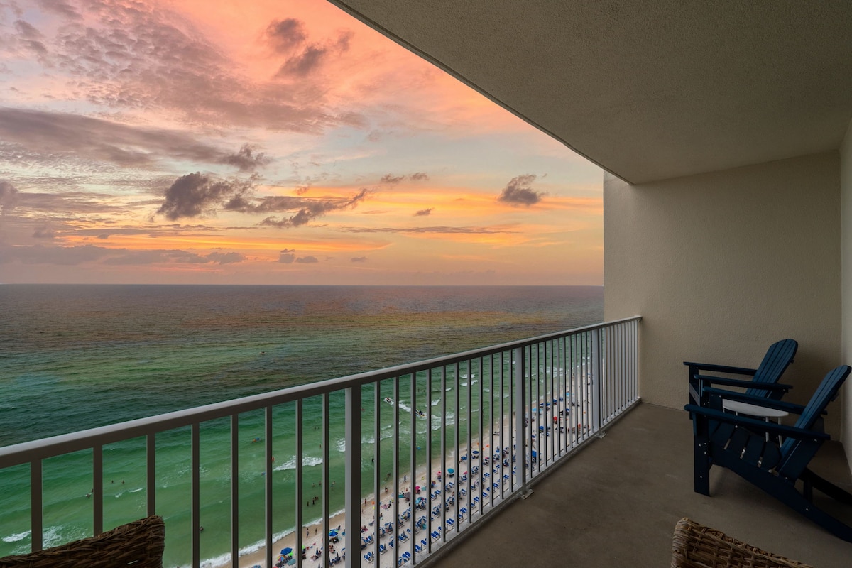 This 270-degree Observatory corner condo on the 25th floor offers breathtaking coastal beache views for miles. Located in the tallest building in PCB, Tidewater Beach Resort, this unique unit allows you to enjoy beautiful sunsets from right from the living room sofa or dinner table. At night, you'll be treated to the dazzling city lights on one side and the enchanting starlight and moonlight over the ocean on the other. The resort boasts several pools, a free spa, a gym, and private beach access