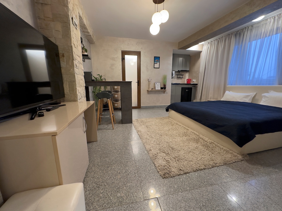 Steps from Neversea Beach & Old Town This private studio offers an unbeatable location right in front of Neversea Beach, with easy access to both the beach and Constanța's historic Old Town. Just a short stroll from Ovidiu Square, where you can explore the iconic Constanța Casino. The area is vibrant with a variety of restaurants and cafes, and for your convenience, a supermarket (Profi) is located on the ground floor of the building.