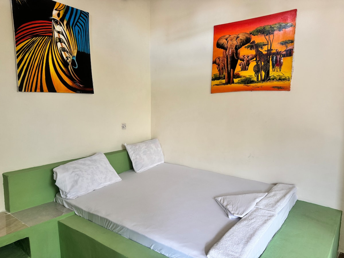 This bright and spacious villa has a small double bed 4x6ft /lounge space downstairs with a kitchenette. Leading up to a huge luxury bedroom, a 6ft x 7ft bed, open plan bedroom with a gorgeous balcony over looking Umoja Villas. It is the perfect place to explore Paje’s white sandy beaches, bars & restaurants, 5 mins walk away & 30 second walk to the main road. We have fibre optic internet and a generator during the evening if the electric cuts out.