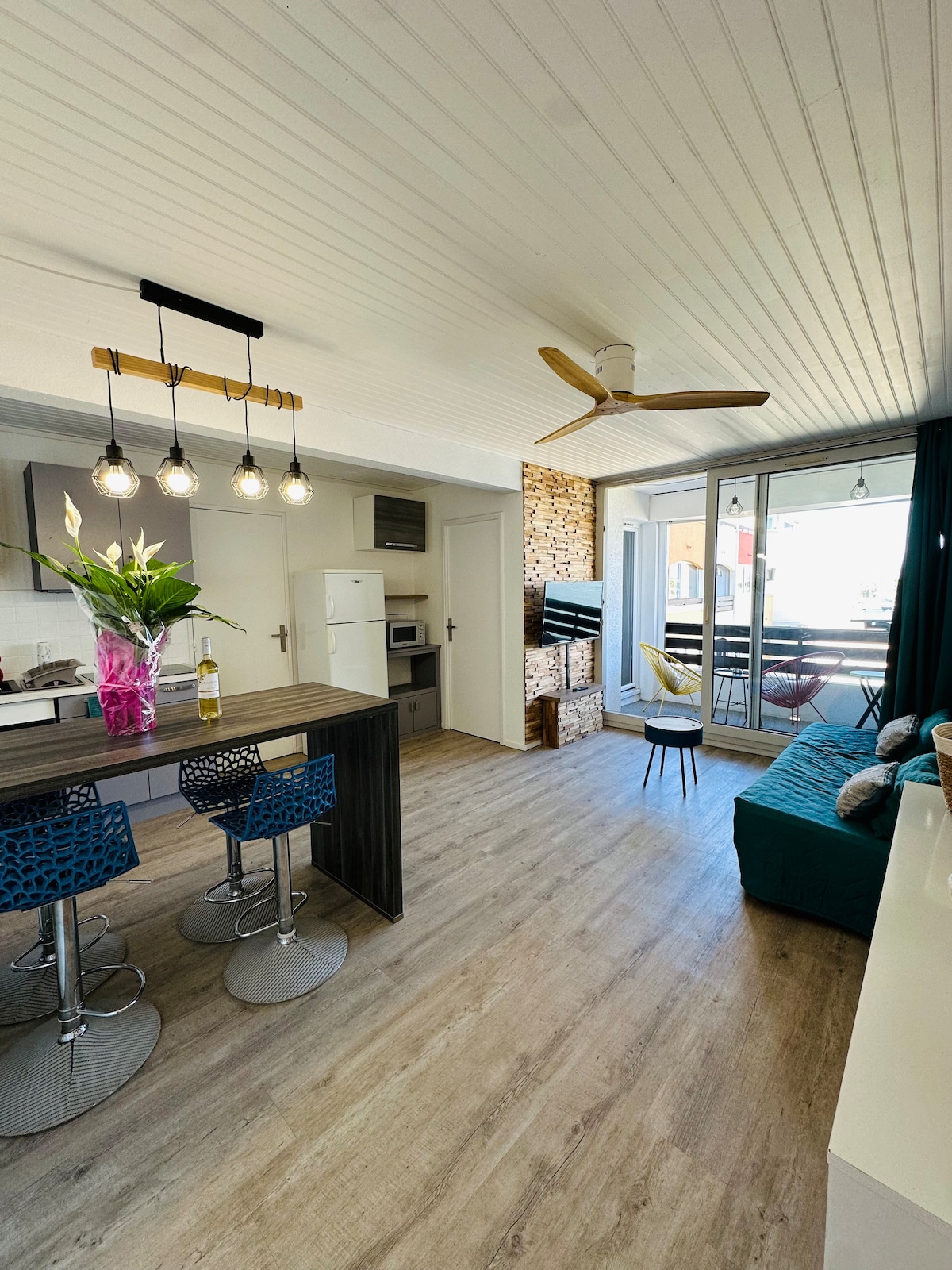 Vue sur le port-neuf-terrasse-Clim-wifi-Park privé
