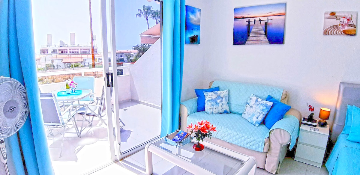Precioso apartamento, moderno, confortable, luminoso y muy bien equipado . Con piscina comunitaria, Wifi, Smart TV. Muy cerca del centro comercial X Sur, y de los supermercados Mercadona e Hiperdino , a 1 km de los parques acuáticos y a menos de 1 km una de las playas más bonitas de la isla. Con parada de autobus en la Puerta. Puedes gozar del uso del aire acondicionado por un pago extra durante tu estadía!!