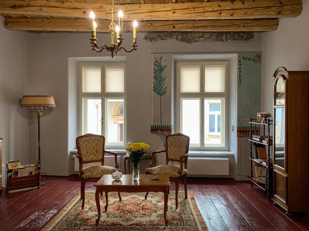 Na tomto klidném místě ve středu dění tě nečekají žádné složitosti. Dům je kulturní památka a tomu odpovídá i rekonstrukce a vybavení apartmánu. Cílem je najít u nás klid a zastavit se na pár chvil.