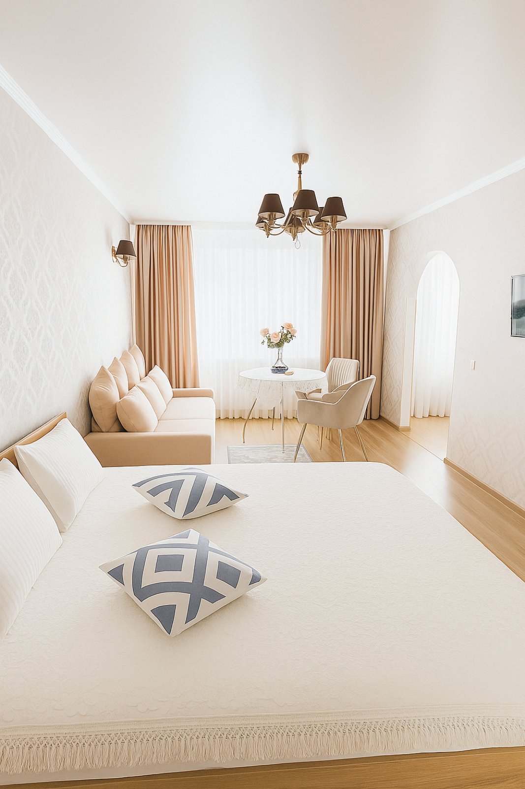 New apartment in the heart of the city located on a quiet street will allow you to relax despite the noise outside the door. The room has everything you need even for your long stay: fitted kitchen, refrigerator, induction hob and everything you need for cooking ,washing machine with dryer,internet and smart tv.Near restaurants,entertainment venues,cathedral,aquarium. Wellcome🩵💛