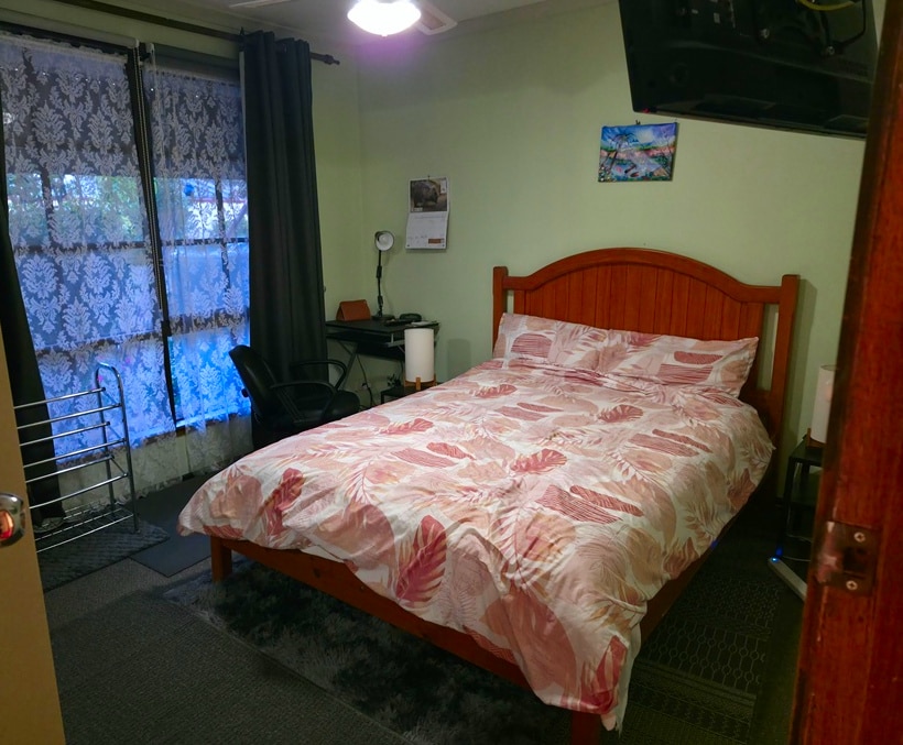 Newly renovated private studio, perfect for a budget-friendly couple’s getaway. Enjoy your own bathroom, air conditioning, TV, fridge, and access to a spacious backyard. Please note: This is a budget property with shared driveway and proximity to train tracks.