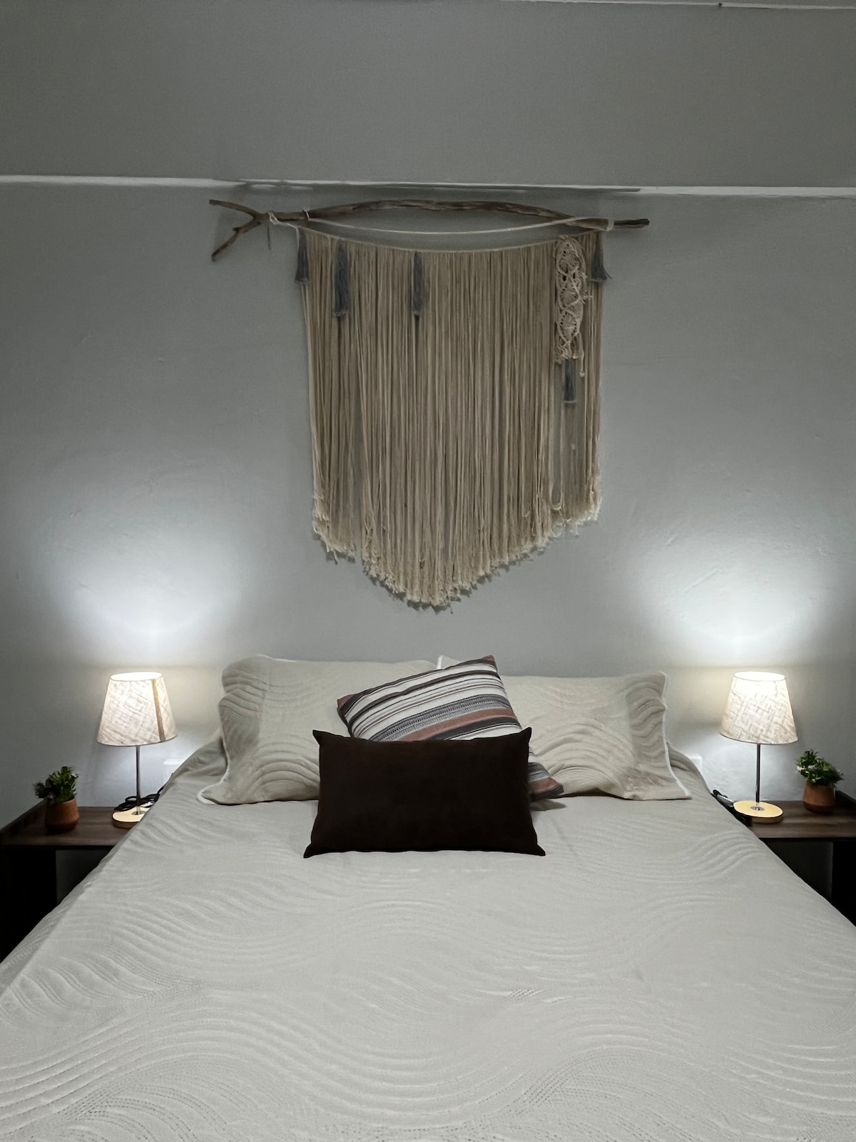 Limpieza profunda antes de cada reservación y desinfectada con producto certificado por COFEPRIS. Dispensadores de gel antibacterial en las áreas comunes. Espacio cálido y hogareño, con servicios para permanecer estancias largas y sentirte como en casa. Cuenta con una cama matrimonial, baño propio, aire acondicionado, closet, cocina equipada con cafetera, parrilla eléctrica, refrigerador, vajilla, microondas y plancha. NO CONTAMOS CON ESTACIONAMIENTO