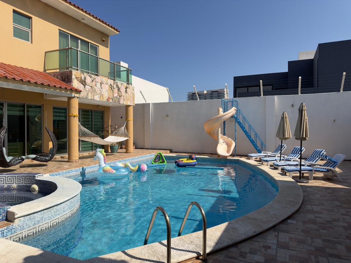 Family getaway, pet-friendly, with a private garden and pool. Beach is just 200 steps away. 3 bedrooms, 2.5 bathrooms and kitchen with spacious living room, ready for you to enjoy with your loved ones. Beach club, and Oxxo convenience store within the complex. 10 minutes from Plaza El Dorado and 20 minutes from Boca del Río. Perfect for relaxing and enjoying quality time with your family. Privacy, comfort, and unforgettable memories with your pets in a family-friendly and safe environment.