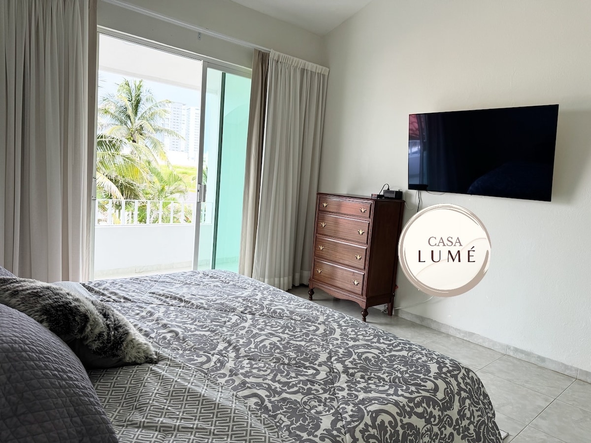 Disfruta de una estancia placentera en nuestro departamento, con todos los servicios incluido, así como alberca compartida y área de convivencia en el roof garden. Para tu comodida, contamos con 2 recámaras, 3 camas matrimoniales y por si fuera poco, tenemos una adicional matrimonial de inflado automático por si alguien más decidió acompañarte. Para que te diviertas sin cargar con tanto!! Te prestamos un par de sillas y una hielera, que te harán disfrutar al máximo.