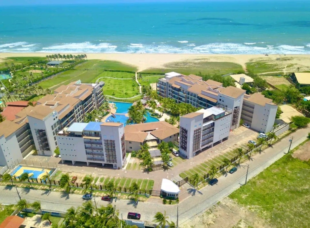 Resort: LOCALIZADO EM FRENTE A PRAIA! ENERGIA INCLUSA NA DIÁRIA TELA/REDE DE PROTEÇÃO PURIFICADOR DE ÁGUA-NÃO TROCA GARRAFÃO Apto Ar Cond. 115m/3 Suítes: CAMA: 1 KING, 1 Queen, 2 Solteiros e 3 Bicamas/Área de Trabalho/MÁQ LAVAR ROUPA Área Comum: 2 Complexos piscinas/restaurantes Beach Tênis/Vôley/4 Quadras de tênis/2 Poliesportivas/Campo de futbol/futmesa/Campos de golf/Caiaque/2 Saunas/Jacuzzi/Espaço kids/Parquinho/Sinuca/Enfermaria/Academia 5 min de carro Beach Park/Supermercados/Drogarias