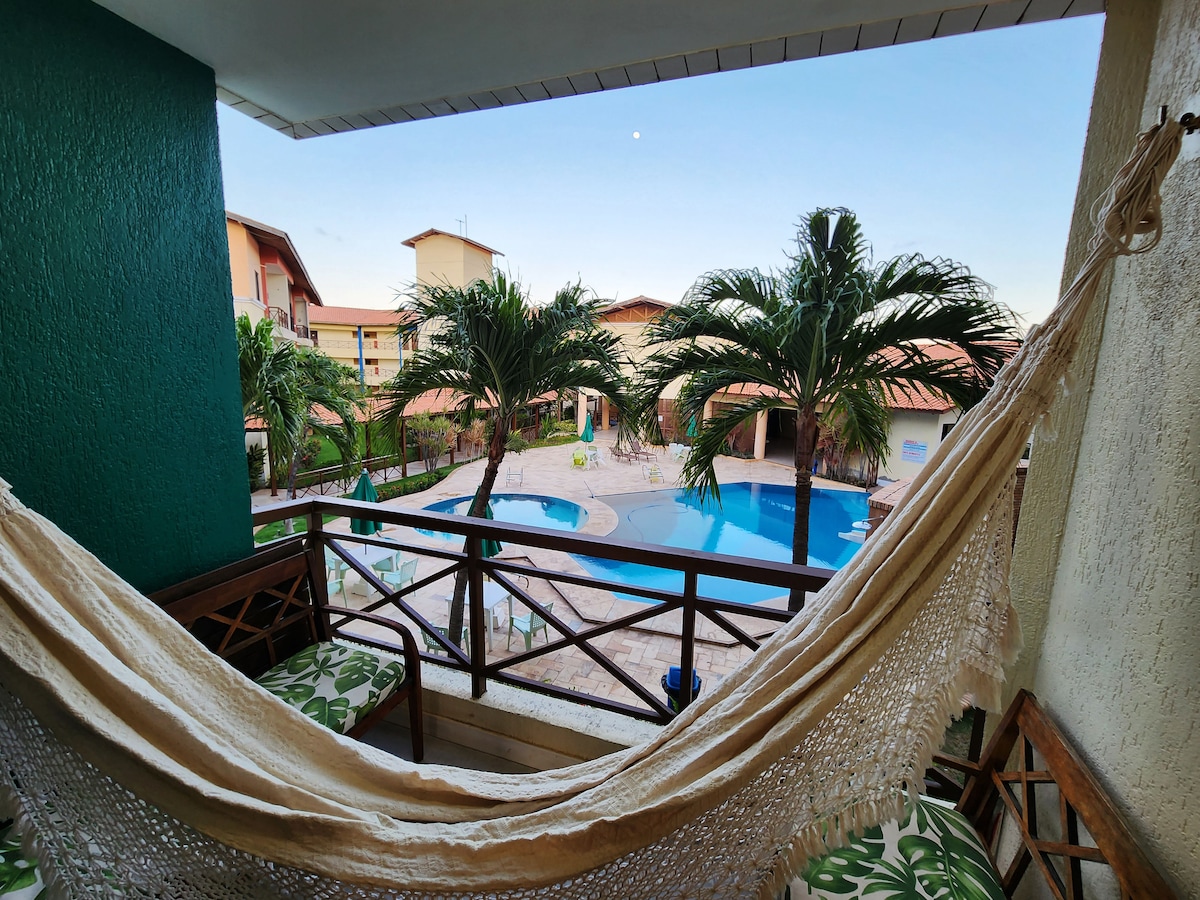 Perfect place to spend a few days with your family in the water park complex. Rental in autonomous unit. Apt on one of the most paradisiacal beaches in the state of Ceará. Resort with view and access to the sea, part of the Beach P. complex, with sauna, swimming pool, jacuzzi, sports and tennis court, gym and games room. Access to Vila. Great for kids, with schedules for all ages, accompanied by recreation team. It has lifeguards (pool and beach).