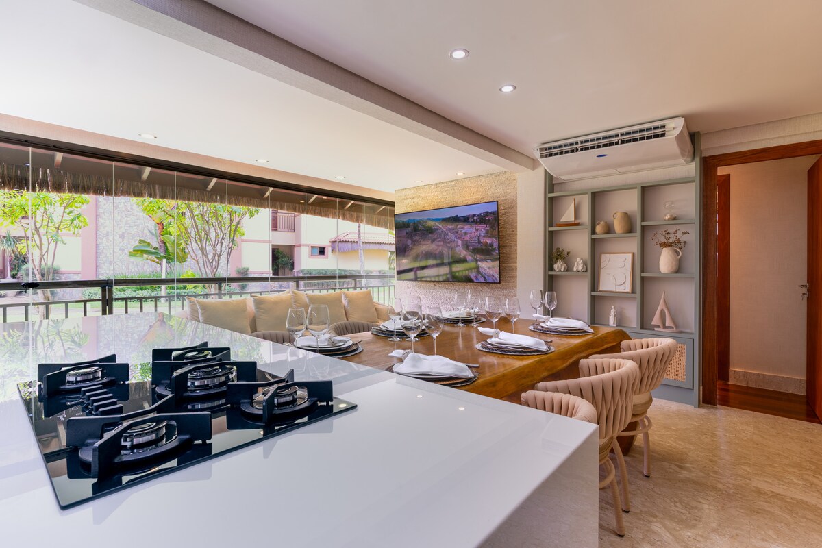 🏆Apto MAIS COMPLETO do Suites Resort! Único no resort com lava&seca, lava-louças e cafeteira Nespresso 📍Localizado dentro do complexo do Beach Park a poucos passos do melhor parque aquático do Brasil 🏖️ Frente mar+acesso direto ao parque+pé na areia 🚀Wi-Fi 800MB ☀️Cozinha completa com filtro de água ☀️Perfeito para famílias com crianças: Varanda com tela de proteção, itens infantis e brinquedos ☀️Piscina, jacuzzi, bar molhado, restaurante, club kids e serviço VIP na praia 🚗 1 vaga incluso