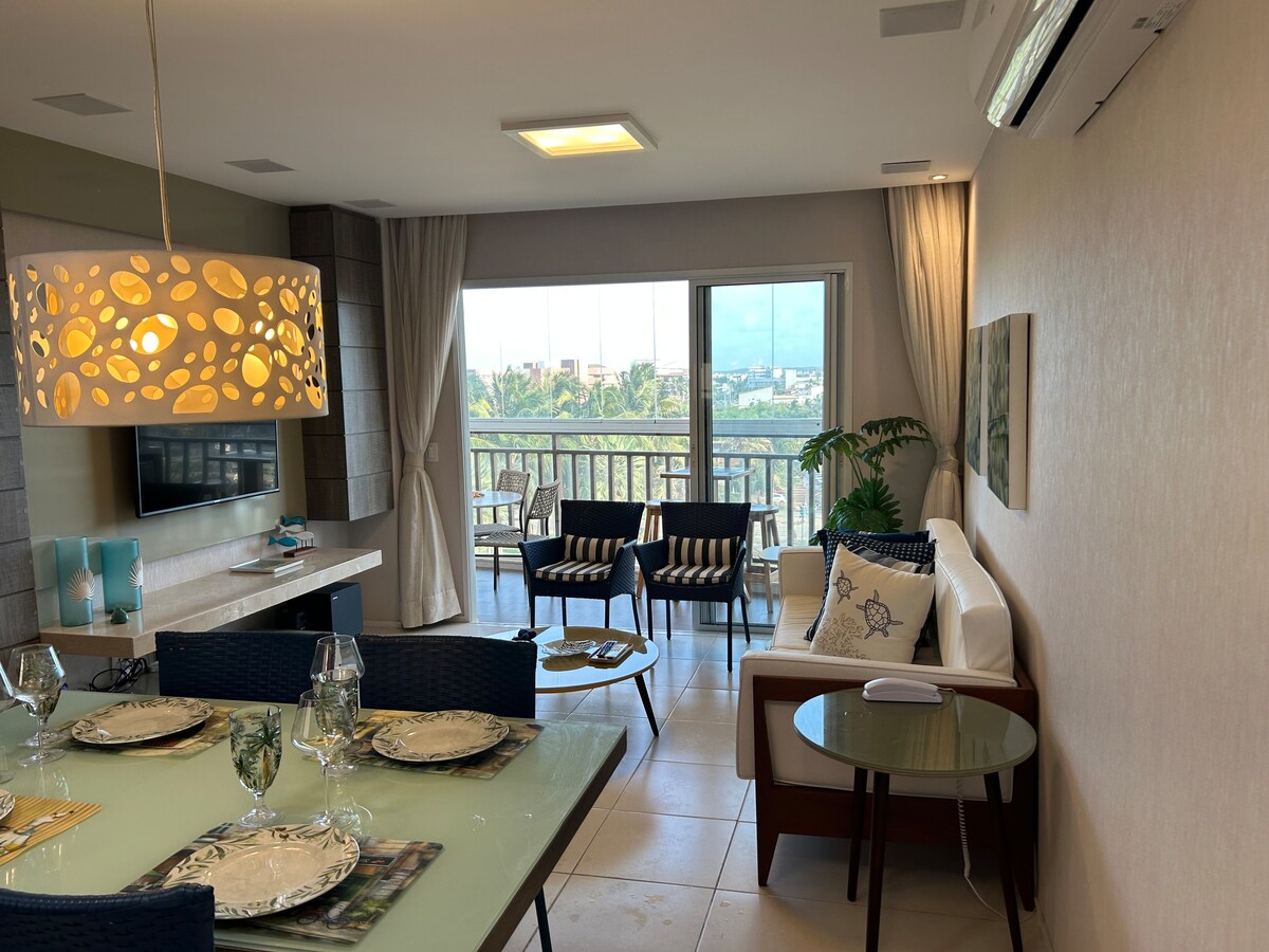 ⛱️Aconchego e Diversão no Condomínio Beach Living! 🌞Pague pelo Airbnb em até 6x sem juros no 💳 e aproveite o maravilhoso clima praiano do Ceará nesse confortável e completo condomínio pé na areia no condomínio Beach Living. 🌊O famoso parque aquático Beach Park fica em torno de 300m, você pode ir andando pela praia. 🌞Apartamento térreo, 2 quartos climatizados (1 suíte), 2 banheiros, sala de estar/jantar, cozinha completa, varanda e jardim. Ventilado, lado sombra. Perfeito para família🏖️