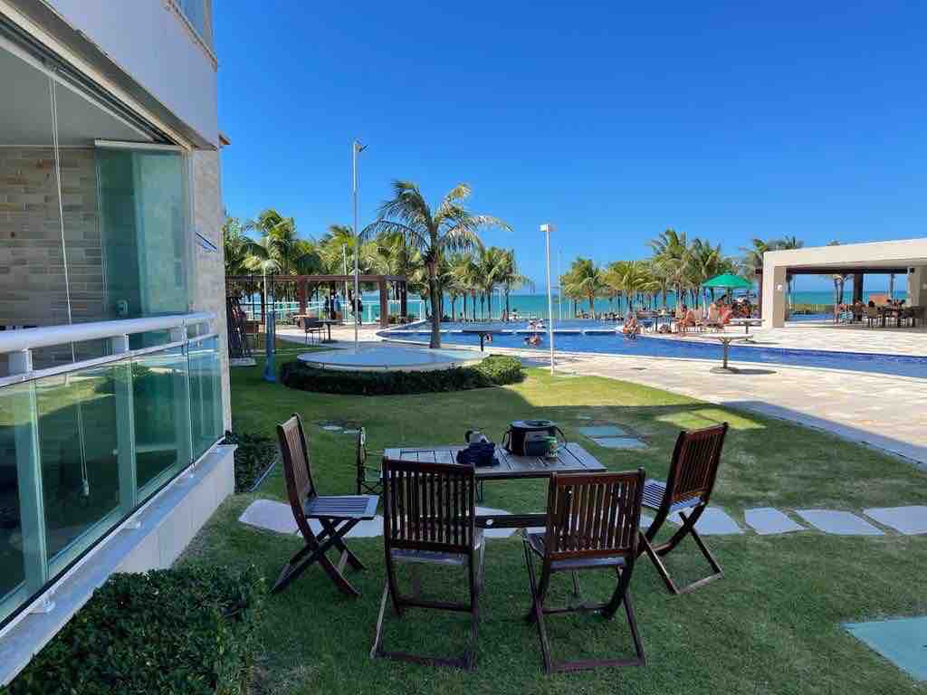 Apartamento lindo e completo! No térreo, oque facilita entrada e saída para praia e piscina e da espaço maior para colocar mesa e cadeiras. Praticamente pé na areia e em frente à piscina! Quase em frente ao restaurante do condomínio. Pode-se fazer o pedido no restaurante e aguardar na mesa do apartamento! Condomínio super seguro, familiar e completo. Duas vagas na garagem, academia, sauna, jacuzzi, quadras, piscina infantil, parquinho e uma praia limpinha e tranquila! Um sonho, mas é real!